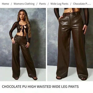 PrettyLittleThing Chocolate PU High Waist Wide Leg Pants Size 6