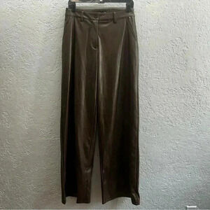 faux leather, new, NWT, high rise, wide leg, brown, neutral, winter
