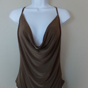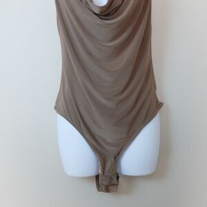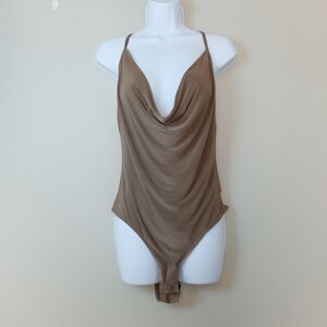 PrettyLittleThing Chocolate Soft Touch Cowl Neck Bodysuit Size 10 NWT