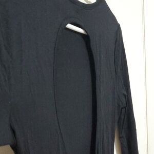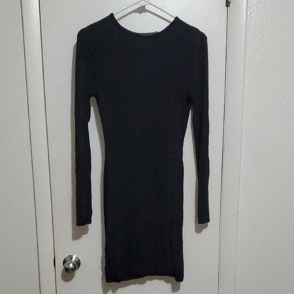 Chic black dress with long sleeves. Perfect for versatile styling. Ideal for day or night wear.