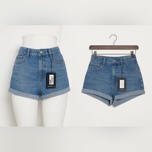 Chic blue jean shorts with rolled hem. Perfect for casual wear. Timeless style by PrettyLittleThing.