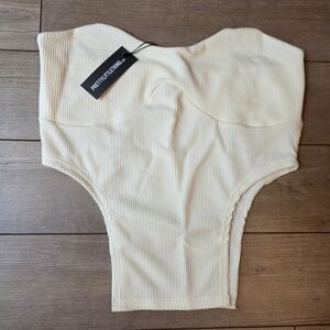 Cream ribbed top. Soft and stylish. Perfect for layering. (#25)