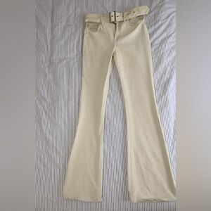 Stylish cream co-ord set. Includes a strapless top and high-waisted pants. Perfect for casual outings.