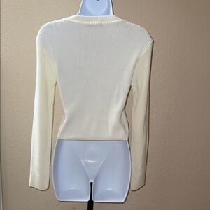 Pre-owned in great condition. Women’s size S Stylish cream V-neck sweater with adjustable ruched front and long sleeves. Perfect for a chic look.
