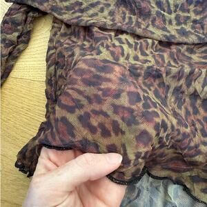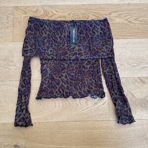 PrettyLittleThing - Crinkle Mesh Bardot Long Sleeve Top in Leopard Black & Brown