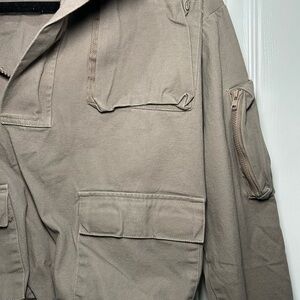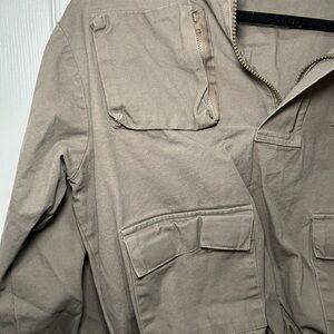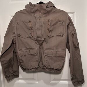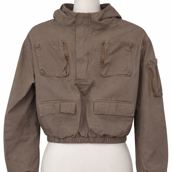 Chic taupe cropped utility/windbreaker style hooded jacket from PrettyLittleThing. Perfect for versatile styling.