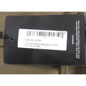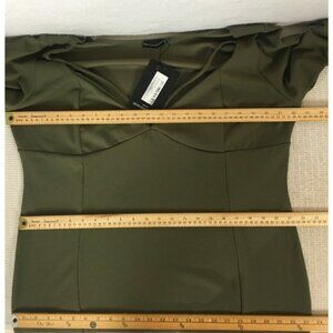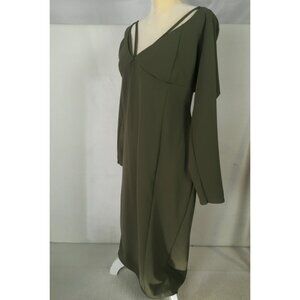 PrettyLittleThing Dress Women Size 24 Olive Green V neck Long Sleeves New w Tags