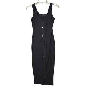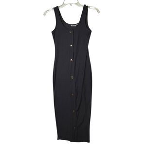 PrettyLittleThing Dress Womens US 0 Black Ribbed Button Front Bodycon Midi Tank
