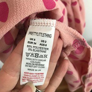PrettyLittleThing Women's Dusty Pink Polka Dot Bardot Tie Waist Shift Dress Sz 2