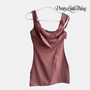 PrettyLittleThing Dusty Pink Woven Drape Mini Dress – Size US 2 – NWT