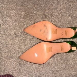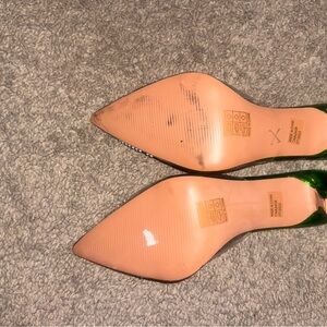 Stunning emerald heels with sparkling rhinestones. Perfect for a chic outfit.