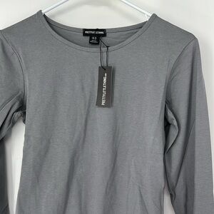 PrettyLittleThing Gray Long Sleeve Bodysuit 10 pit to pit measures 17.5 inches. Hip to hip measures 15.5 inches. Pit to hip measures 11.5 inches