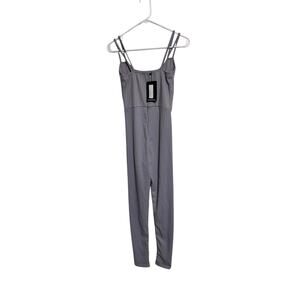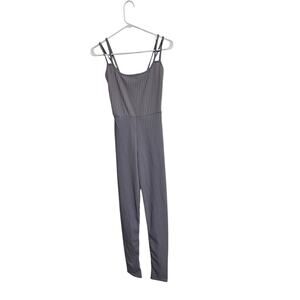 PrettyLittleThing Gray Ribbed Double Strap Jumpsuit Size 6 NWT