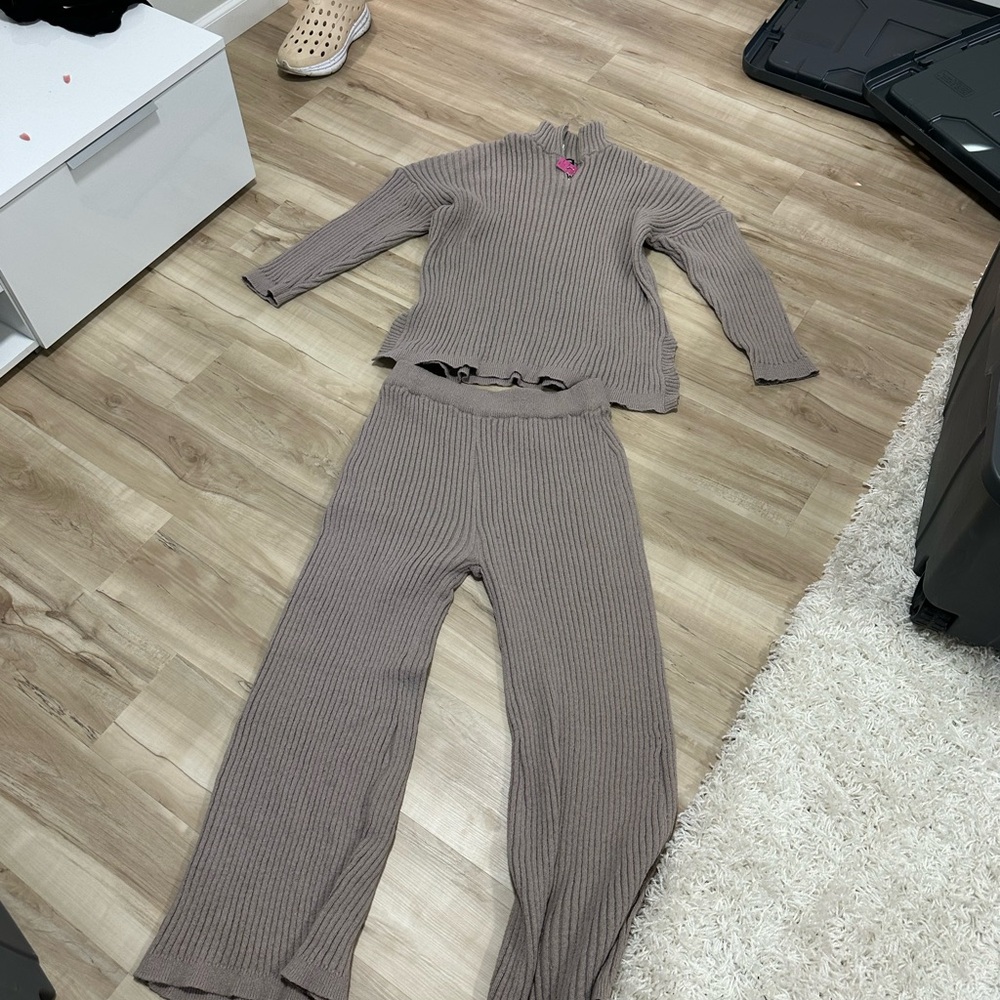 Chic ribbed knit top with zipper detail. Ideal for casual wear. With pants. It’s a set.