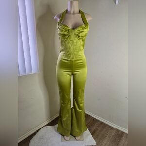 PrettyLittleThing Green Corset Jumpsuit with Wide-Leg Pants