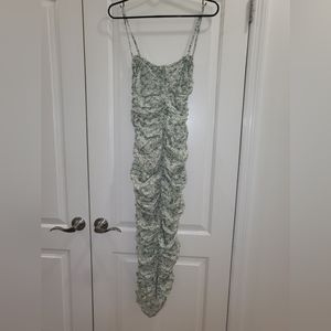 PrettyLittleThing Green Floral Print Detail Ruched Midaxi Dress Size