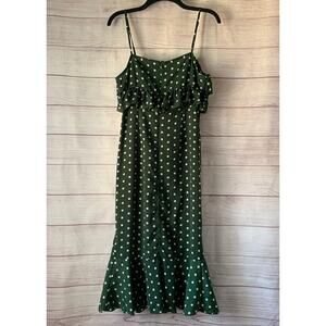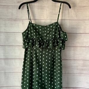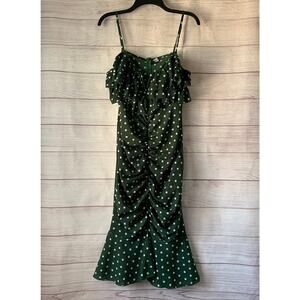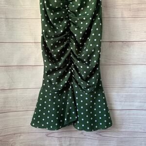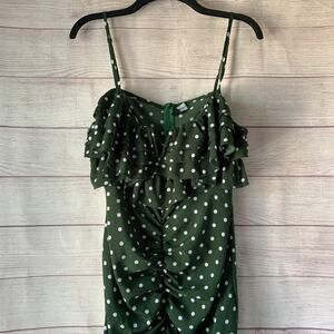 PrettyLittleThing Green and White Polka Dot Dress Ruffle Top Ruched Size 10