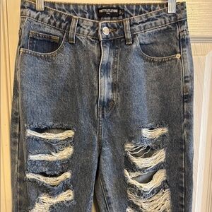 PrettyLittleThing High Rise Blue Distressed Jeans