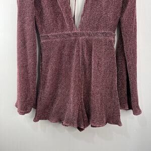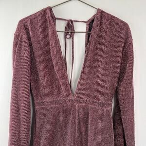 PrettyLittleThing Hot Pink Playsuit Glitter Plunge Plisse Flare Sleeve Sz 4 NEW