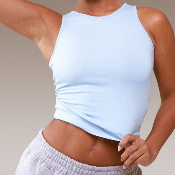 “Freshen up your wardrobe with this season's must-have hue with this light blue cotton racer Vest top. Made from a light blue cotton material with a racer design and a longline length, how could you say no? With endless styling possibilities for the weekend and everyday, this Vest top is just what your wardrobe is missing. Team with comfy sweatpants, box-fresh sneakers and a hoodie to complete this super relaxed vibe.”