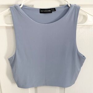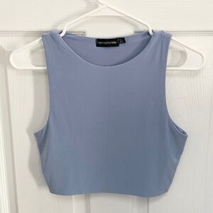 Elevate your style with this chic blue crop top from PrettyLittleThing. Perfect for any casual outing, this top offers both comfort and fashion. Stretchy and double layered so you can go without a bra or cami.