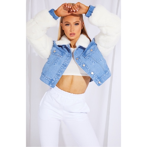 PrettyLittleThing: Light Wash Fur Sleeved Denim Jacket