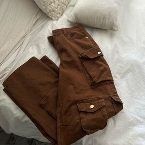 These brown cargo pants from PrettyLittleThing offer a stylish and relaxed fit, perfect for adding a touch of casual elegance to your wardrobe. The rich denim texture makes them an ideal choice for cooler seasons, providing both comfort and warmth.