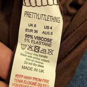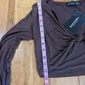 NWT PrettyLittleThing Jersey Knot Front Long Sleeve Crop Top. Color Brown. Size 4. Viscose/elastane blend. Machine wash. See pics for measurements.