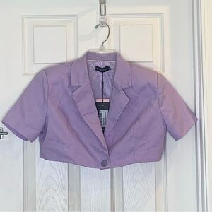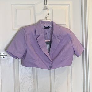PrettyLittleThing LILAC WOVEN CROPPED SHORT SLEEVE BLAZER Size 0