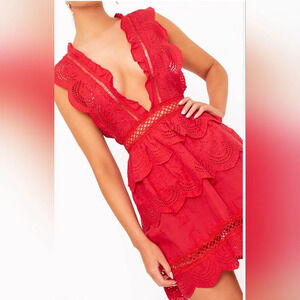 PrettyLittleThing Lace Plunge Dress / Red / Tagged Size 12