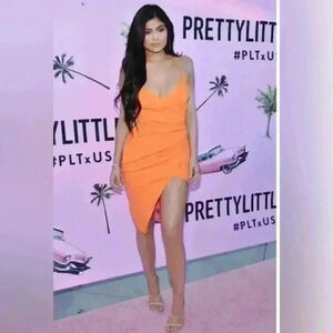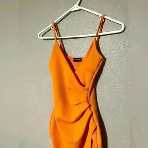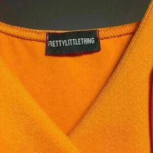 PrettyLittleThing Lauriell Bright Orange Wrap Front Crepe Midi Dress Size Small