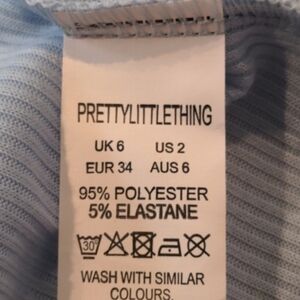 PrettyLittleThing Light Blue Ribbed Tie Front Long Sleeve Crop Top size 2