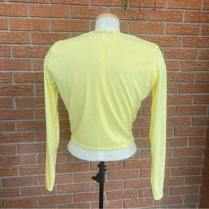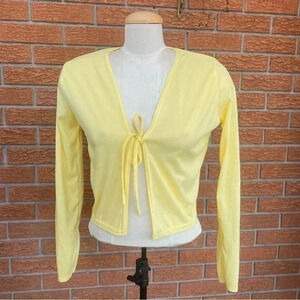 PrettyLittleThing Light Yellow Ribbed Tie Cardigan Women’s Size 6