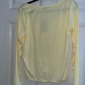 Chic light yellow blouse with tie-front detail. Long sleeves and stylish design. Perfect for casual outings.