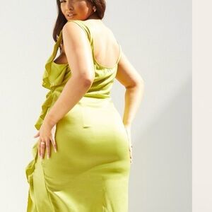 PrettyLittleThing Lime Asymmetrical Ruffle Dress