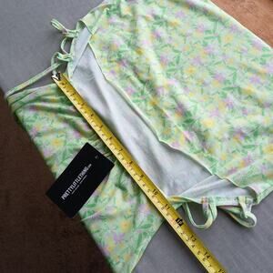 PrettyLittleThing Lime Ditzy Print Lace Up Back Shift Dress sz 4 mini halter NOS