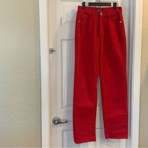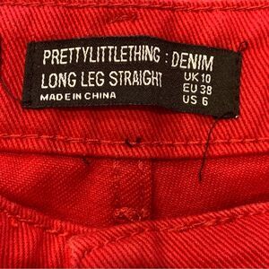 PrettyLittleThing Long Leg Straight Red Jeans Size 6