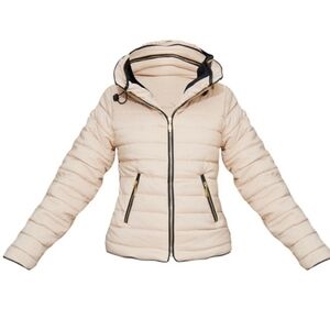 PrettyLittleThing Mara Stone Puffer Jacket Womens Size Medium