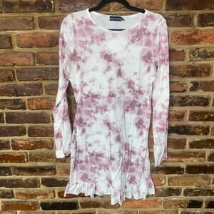 PrettyLittleThing Mauve Tie Dye Long Sleeve Frill Hem Mini Dress Women's Size 12