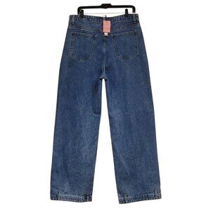 PrettyLittleThing Mid Blue Wash Waistband Detail Hem Baggy High Waist Jean NEW