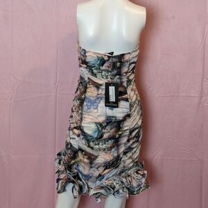 PrettyLittleThing Multi Renaissance Print Woven Ruffle Frill Hem Bandeau Dress 6