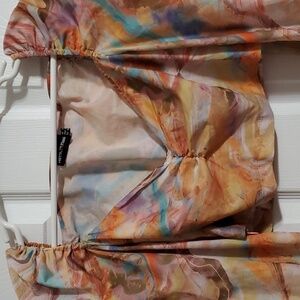PrettyLittleThing Multicolor Long Sleeve Deep V Fitted Crop Top Size 8