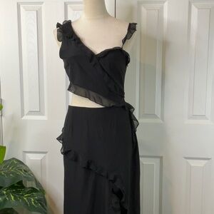 PrettyLittleThing - NWT Black Chiffon Frill Cut Out Maxi Dress Size 6