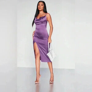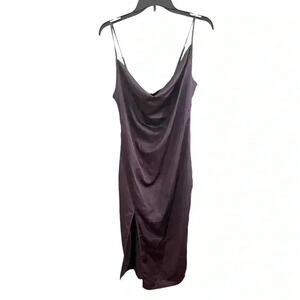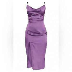 PrettyLittleThing NWT DARK PLUM STRAPPY SATIN COWL MIDI DRESS Sz 6