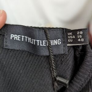 PrettyLittleThing NWT Ribbed Black Extreme Split Cap Sleeve Midi Dress Sz 16