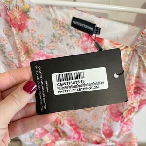 PrettyLittleThing One Shoulder Draped Chiffon Bodycon Dress Pink Floral Sz 6NWT