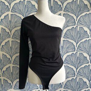 PrettyLittleThing One-Shoulder Black Bodysuit – Size US 8 / UK 12