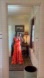 Vibrant orange maxi dress with ruffle details. Sleeveless design. Perfect for elegant occasions.