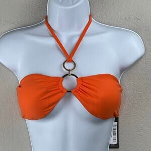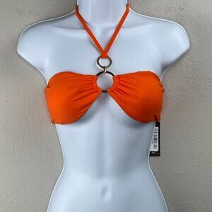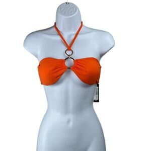 PrettyLittleThing Orange O-Ring Halter Pullover Summer Swim Bikini Top SM/2 NWT