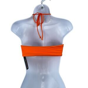 PrettyLittleThing Orange O Ring Halter Pullover Summer Swim Bikini Top 2 NWT